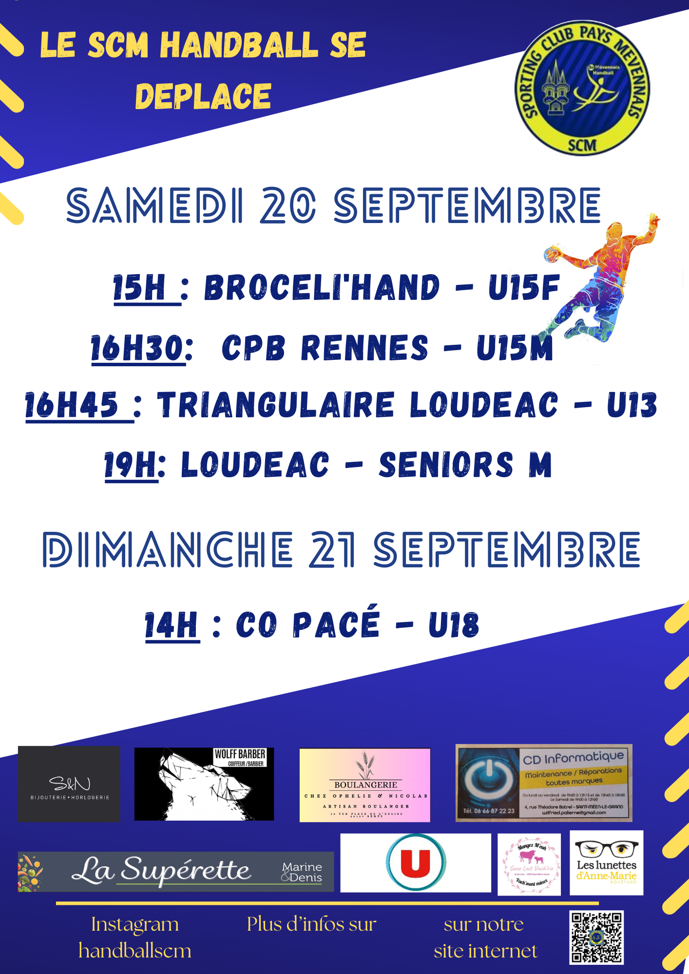 Ce weekend, toutes nos équipes s'envolent loin de nos bases pour faire honneur aux couleurs du SCM Handball ! Consultez le programme pour les soutenir à distance via les réseaux sociaux !
